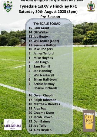 TYNEDALE v HINCKLEY RFC - 30th August 2025 (3pm)