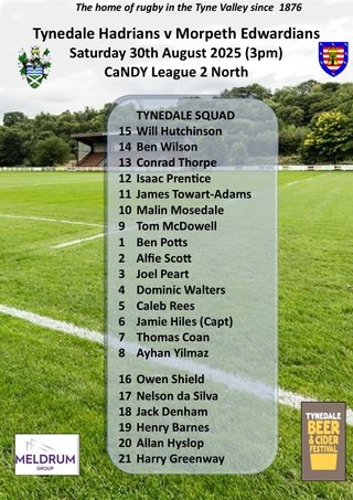 Saturday also sees a youthful Hadrians side hosting Morpeth Edwardians in a very early 'season' CaNDY 2 North League fixture. It will be great to see many former Colts making their first foray into senior rugby.