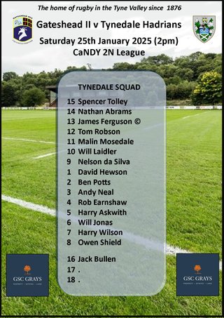 • 2pm - Tynedale 1stXV v Preston Grasshoppers (Bar open throughout game)