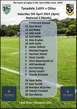 This Saturday our visitors are Otley RUFC who have always been a leading rugby union club in Yorkshire as well as long-time rivals and friends of Tynedale, so we are delighted to welcome their players, officials and supporters to Tynedale Park.