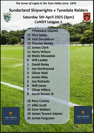 Sunderland Shipwrights v Tynedale Raiders (3pm) CaNDY League 1 0