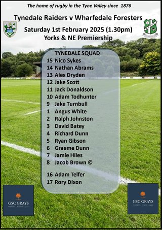 Tynedale Raiders v Wharfedale Foresters (1.30pm) – Yorks & NE Premiership