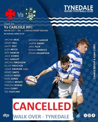 Carlisle Colts v Tynedale Colts WO – National U18 Cup - CANCELLED