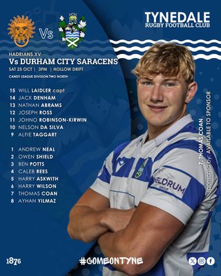 Durham City Saracens v Tynedale Hadrians (3pm) – CanDY 2 North