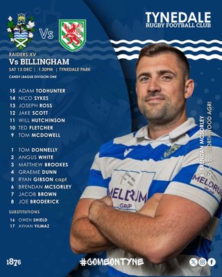 This Saturday we welcome all players, officials and supporters from Billingham, who make the short journey to take on our 1stXV and Raiders in what are sure to be close, competitive derby matches. We hope everyone associated with the club enjoys their day at Tynedale Park.